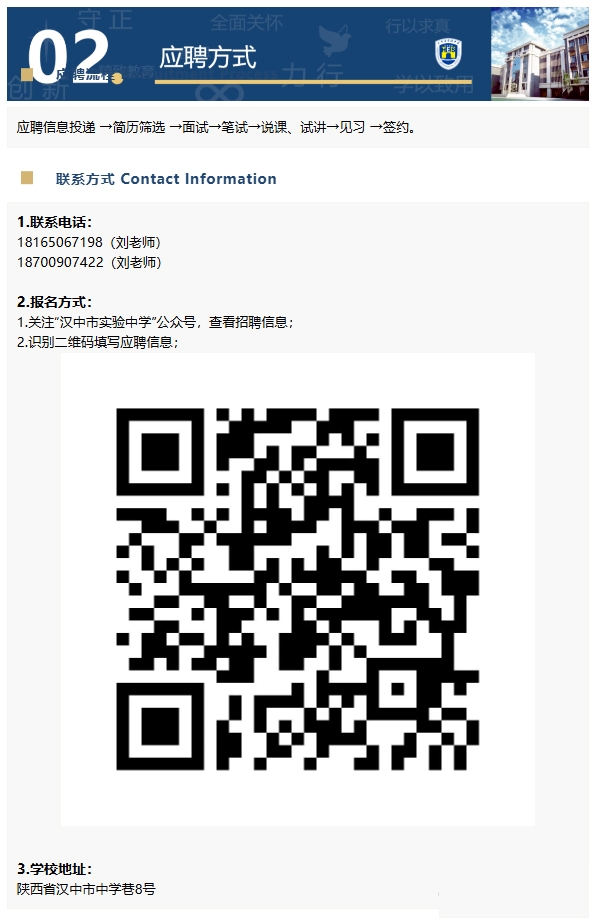 漢中市實(shí)驗(yàn)中學(xué)是陜西新天漢投資有限公司興辦的一所三年制初級(jí)中學(xué),位于陜西省漢中市市中心,占地43畝,環(huán)境優(yōu)美,育人氛圍濃厚,配備**的教學(xué)設(shè)施和智能化校園設(shè)施,現(xiàn)有38個(gè)教學(xué)班,1700多名學(xué)生。
