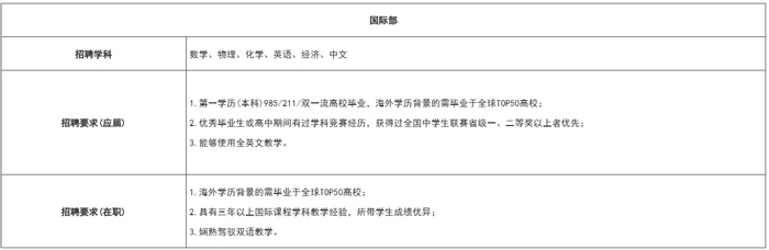 郵箱申請(qǐng):請(qǐng)將您的簡(jiǎn)歷發(fā)送至郵箱,郵件名按照:“學(xué)部+學(xué)科+姓名”的形式填寫(例:初中部+化學(xué)+吳悅),
