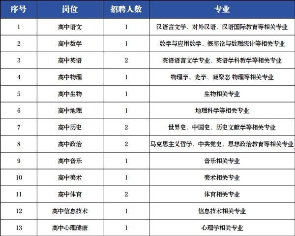 3. 教師崗位須持有相應(yīng)學(xué)科的高級(jí)中學(xué)教師資格證。