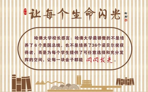 學(xué)校秉承“讓每個(gè)生命閃光”的辦學(xué)理念,致力于讓學(xué)生在品德、習(xí)慣、文化、能力、特長等方面閃光。發(fā)展學(xué)生核心素養(yǎng),為學(xué)生的終身學(xué)習(xí)和發(fā)展奠基。