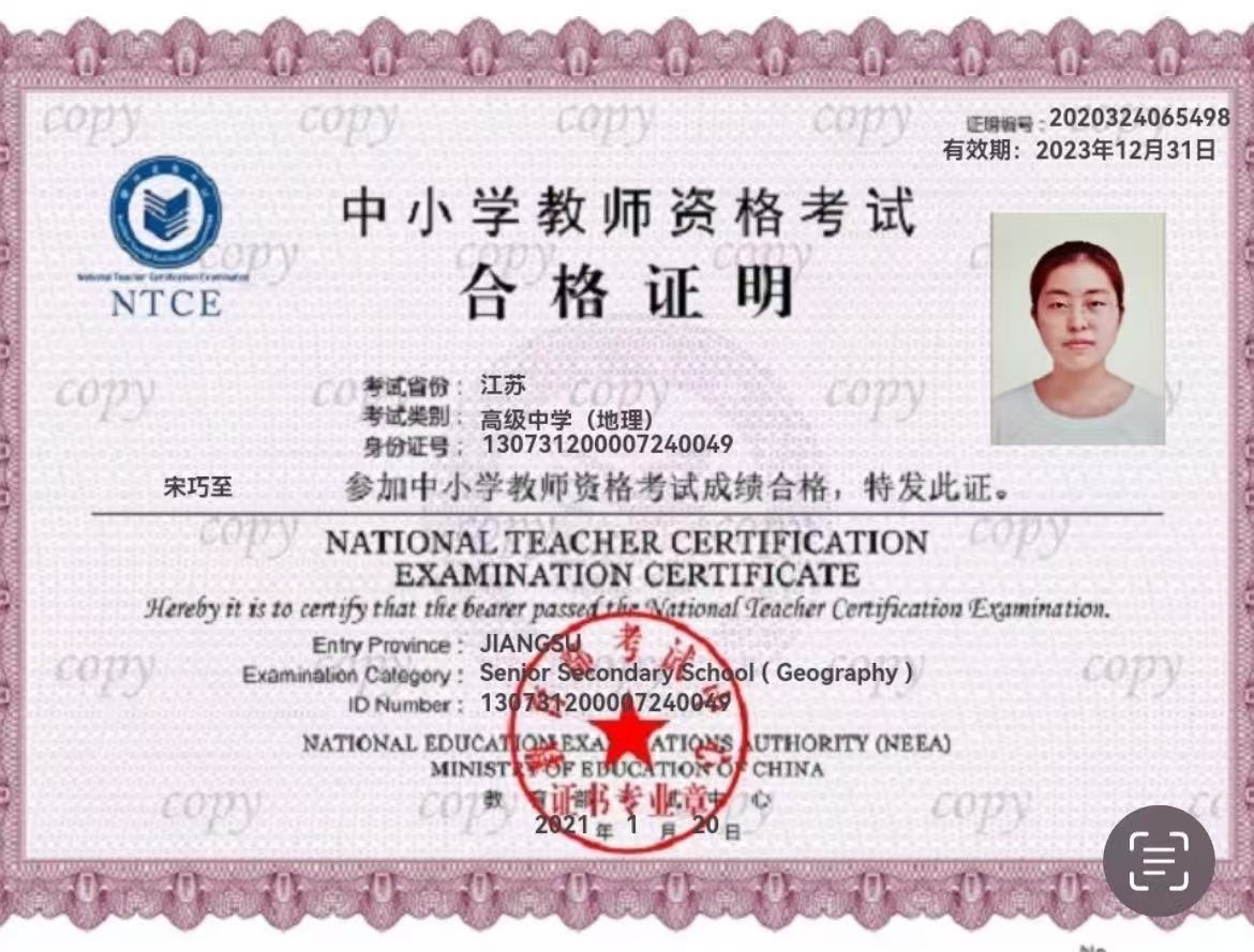 實習經(jīng)歷:徐州市第三十七中學(xué)-地理教師兼班主任(高三) 2020年12月 - 2021年12月